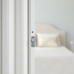 The panels of the FP Plastic folding doors are made from easily cleaned PVC plastic. Mechanical pipe hinges ensure a long service life, and a friction latch serves as an effortlessly installed closing mechanism. A key-operated lock can be added to the folding door as well.